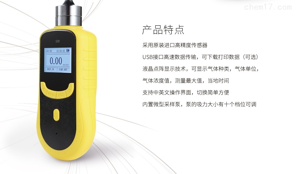 | 采樣方式: | 泵吸式,流量可達1L/min,泵的吸力大小有十個檔位可調(diào) | |